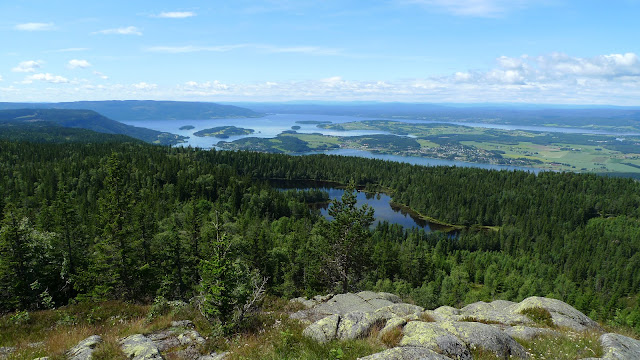 Full and content we moved south, following the forest road again to be able to be at our camp close to Sognsvann in time. The weather was improving and we both enjoyed being out, but we were also mindful not be run down by the many mountain bikers which were out too, speeding along the forest roads that criss-cross Nordmarka. We left the road and got onto to the trail again, following an unmarked trail that my GPS confidently said would take us where we wanted to be. A steep climb and descent took us to the pond where we had planned to camp, a nice nice place with few people passing by on the trail next to it, and with lots of dry wood to be found.